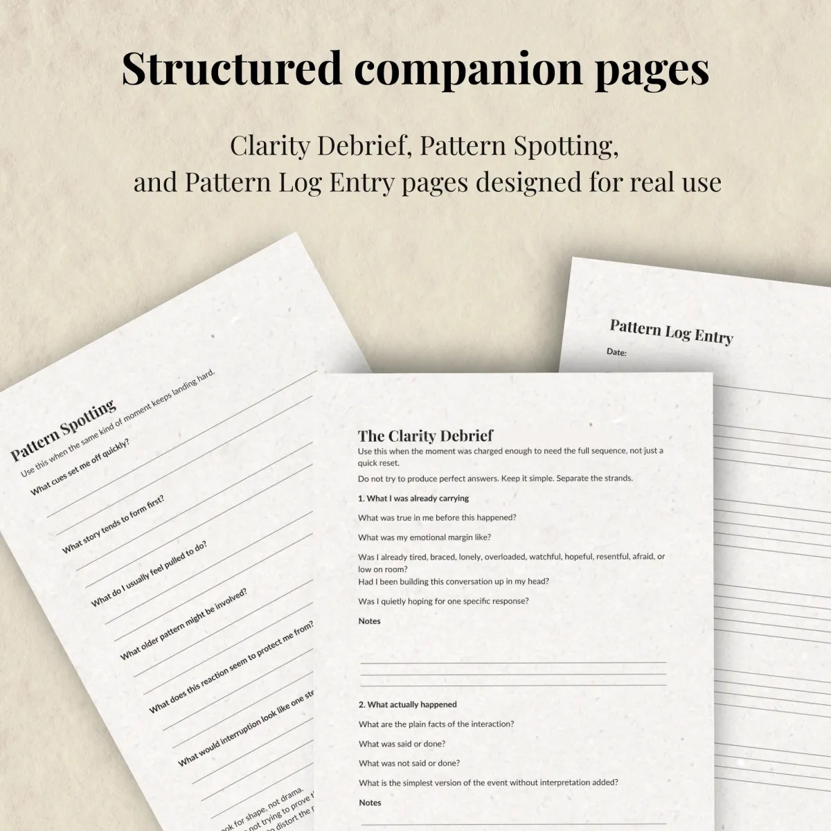 Everything you need to understand what happened, work through it, and notice what repeats over time.